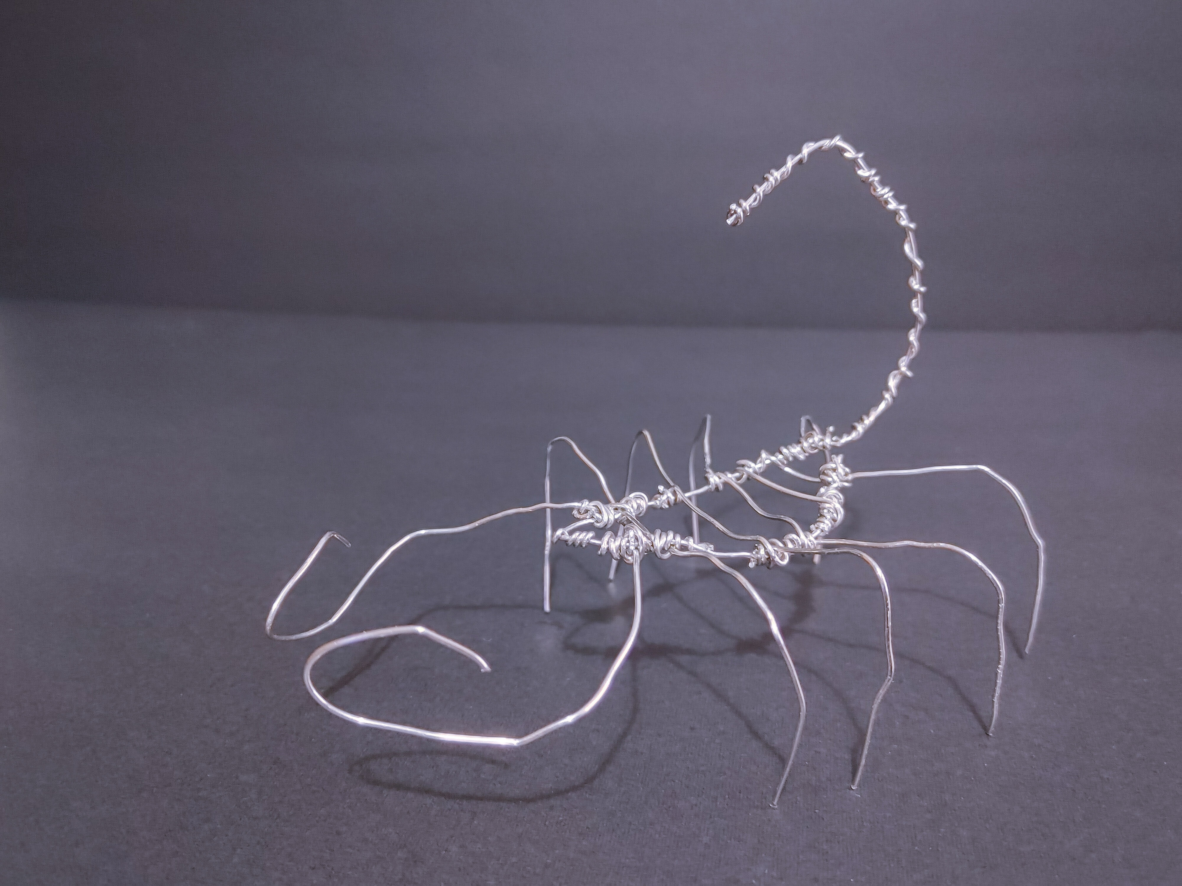 This little wireframe scorpion was made with aluminum wire and has been repainted black with a protective coating.