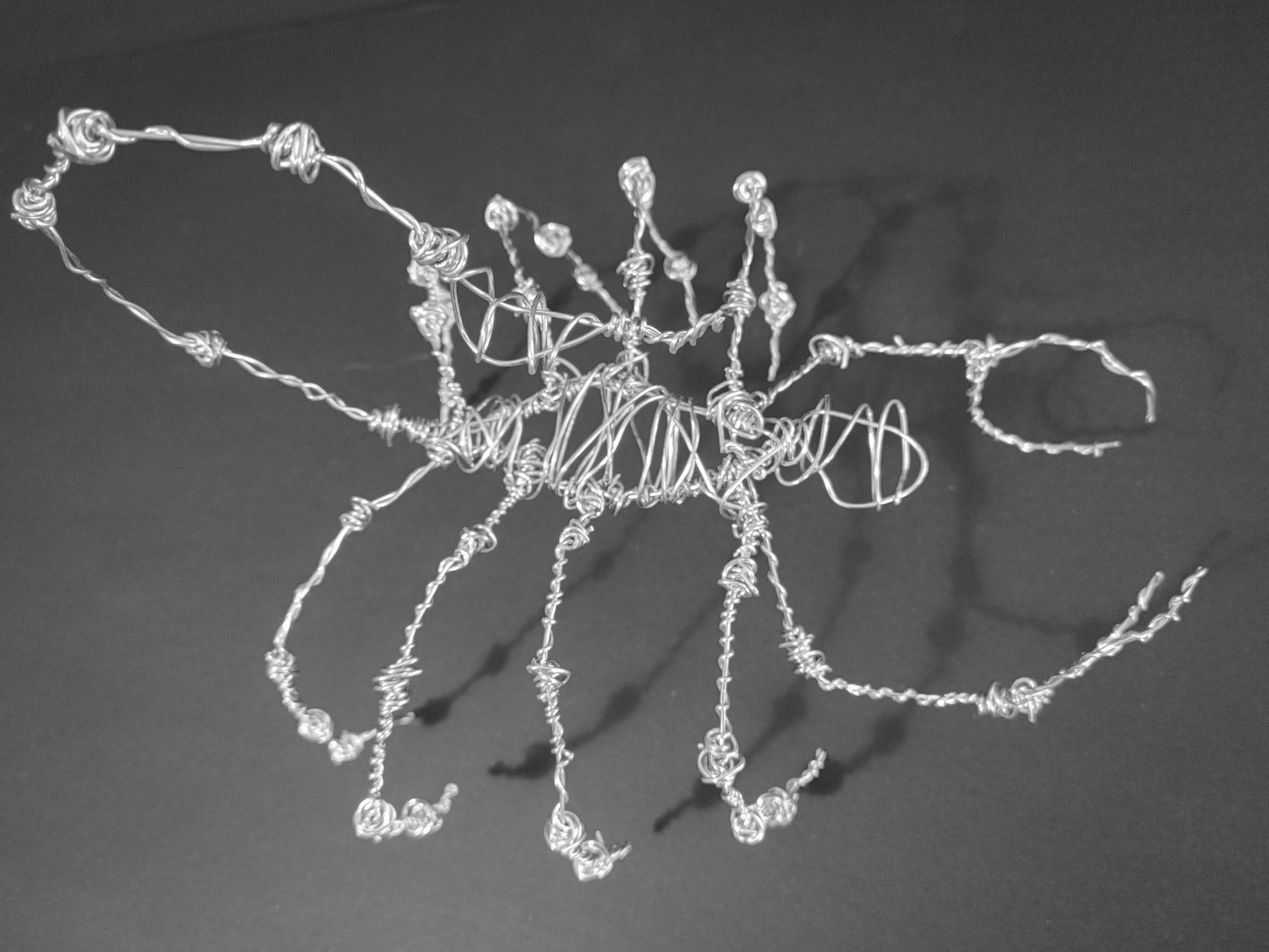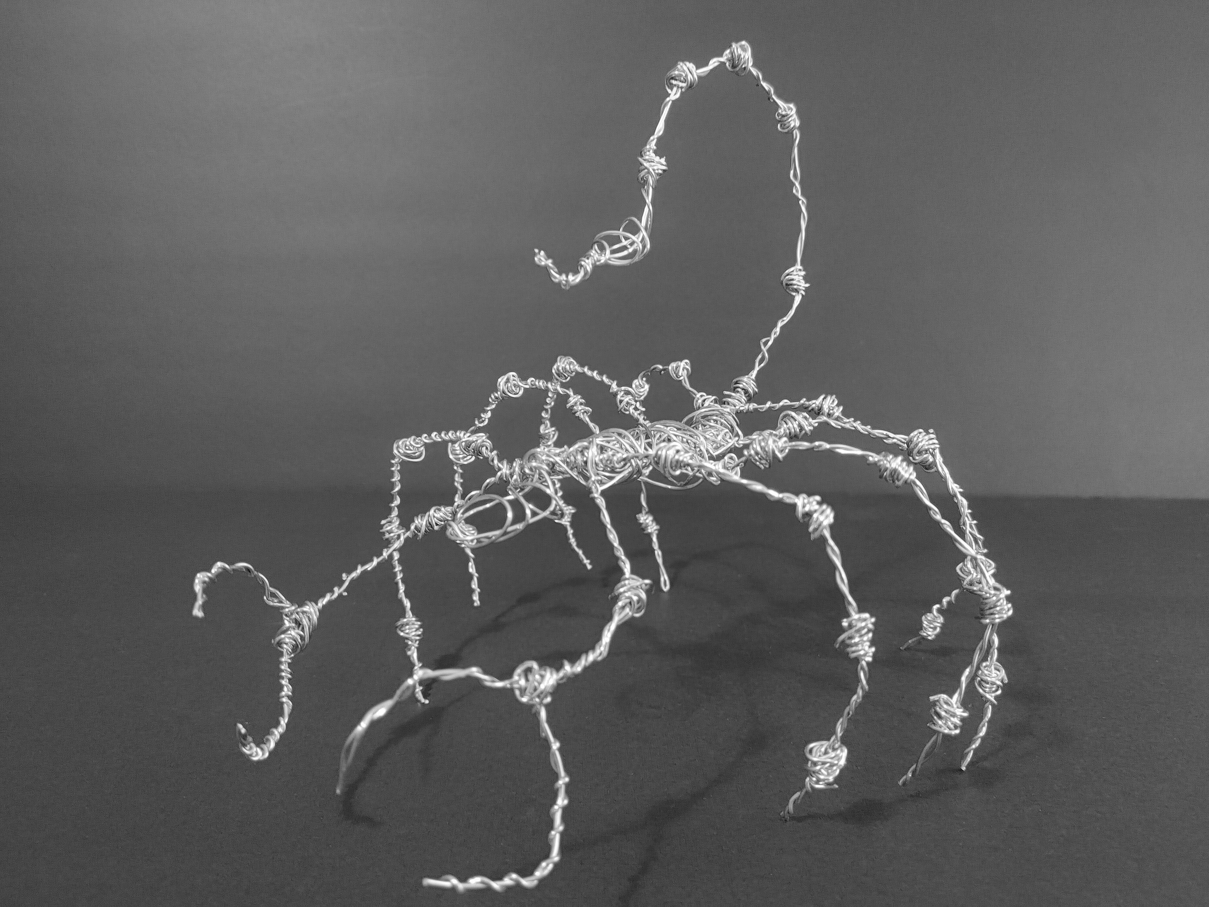 Someone paid me to make this for them. It was somewhat modeled after the first wireframe scorpion that I did, but was done with aluminum wire rather than galvanized wire.